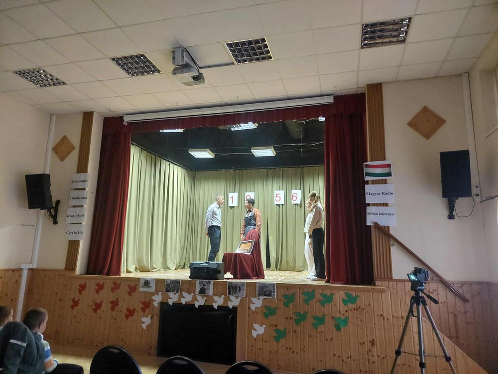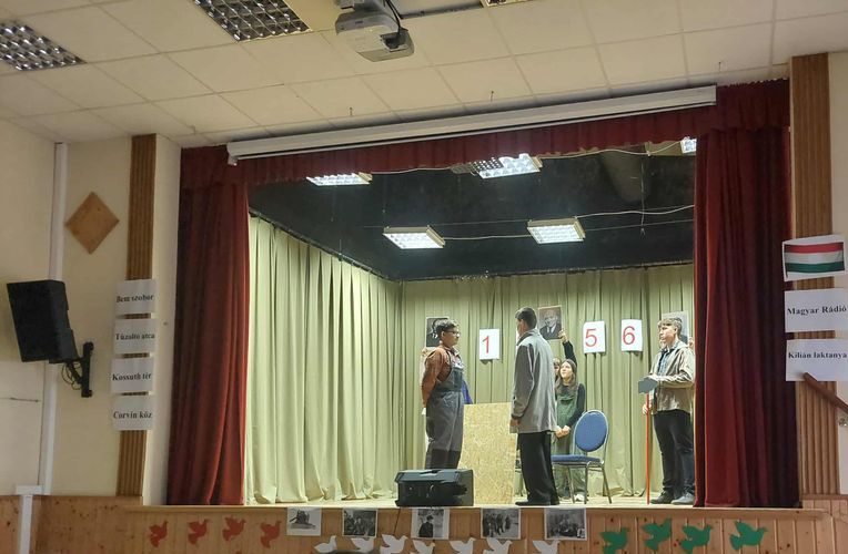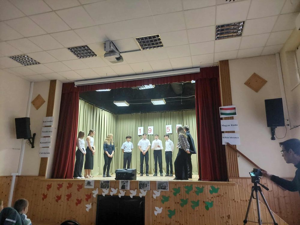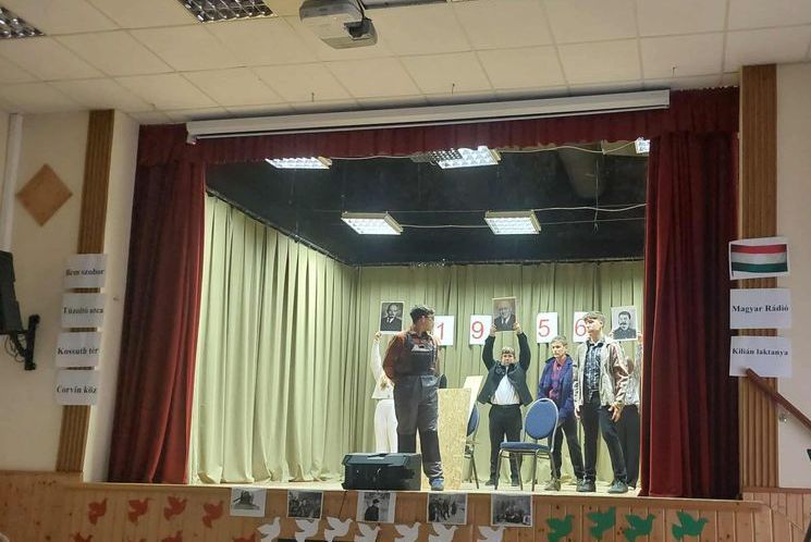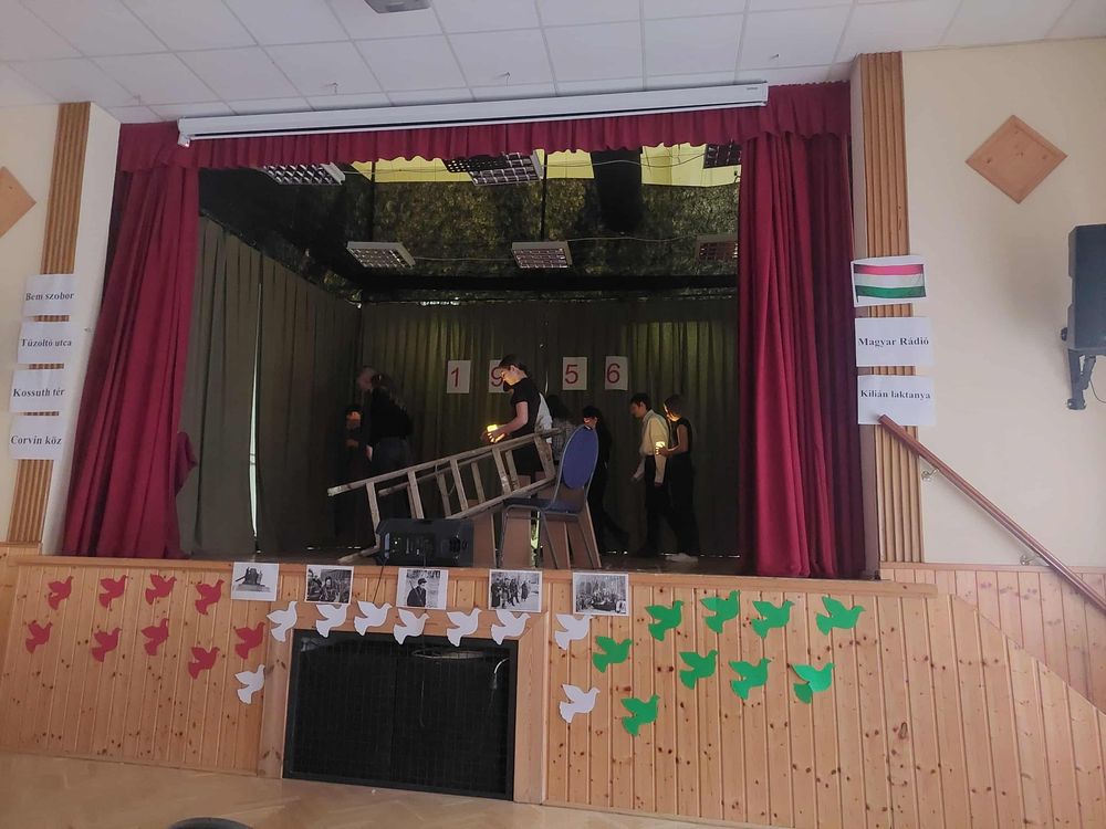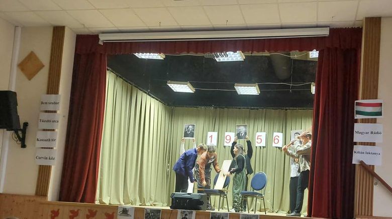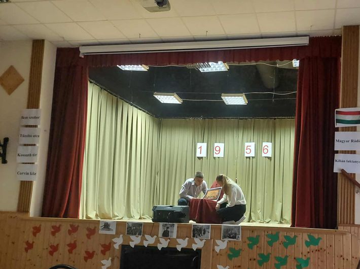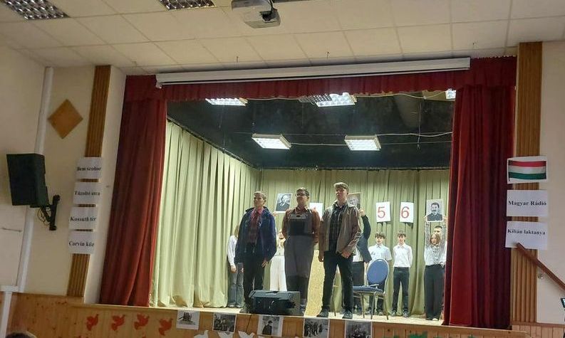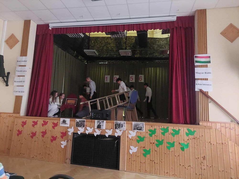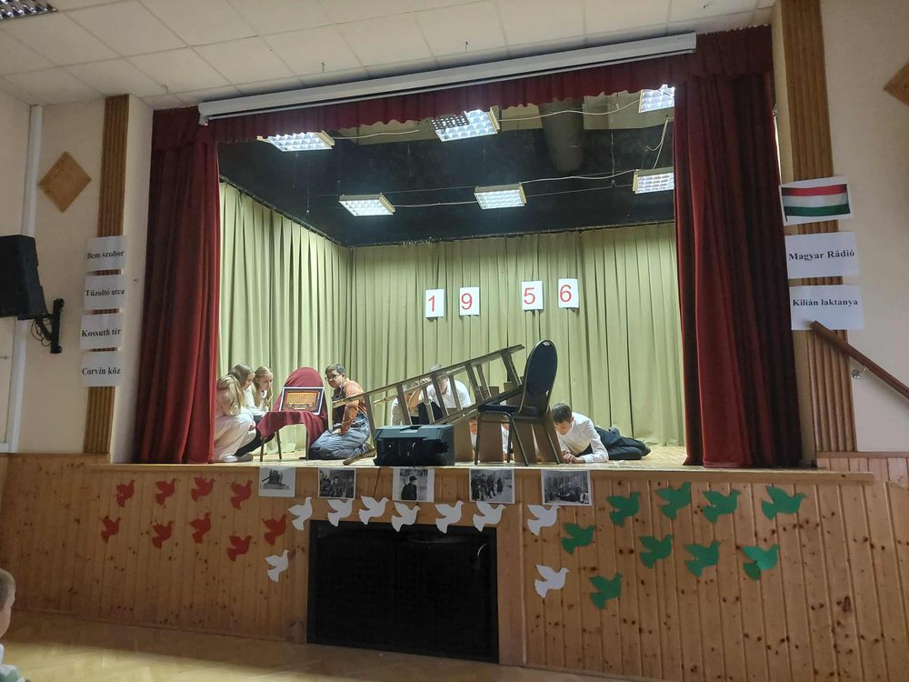 A nyolcadikosok Tégi Marcell tanárbácsi vezetésével egy család sorsán keresztül mutatták be az 1956-os eseményeket.