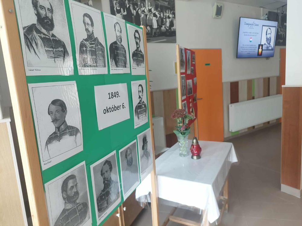 A 6.b-sek Bakosné Heilman Katalin osztályfőnökükkel az aradi vértanúkról emlékeztek meg. A kivetítőn a mártírok utolsó szavait olvashattuk.