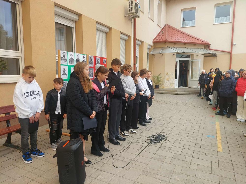 Mikonya Józsefre emlékeztek a hatodikosok Schwarczingerné Fuchs Mónika tanárnő vezetésével.