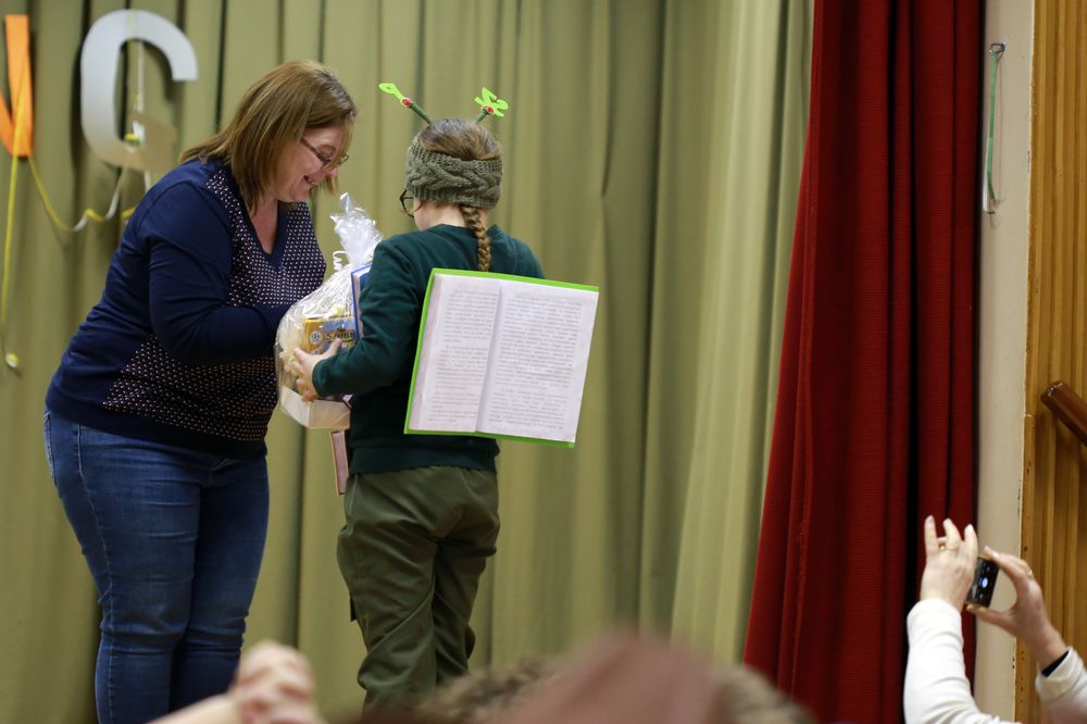 Őszi-téli ösvényeken című kötetéből az Élet a vadetetőn mesét hallgatták meg. Az írónő által készített