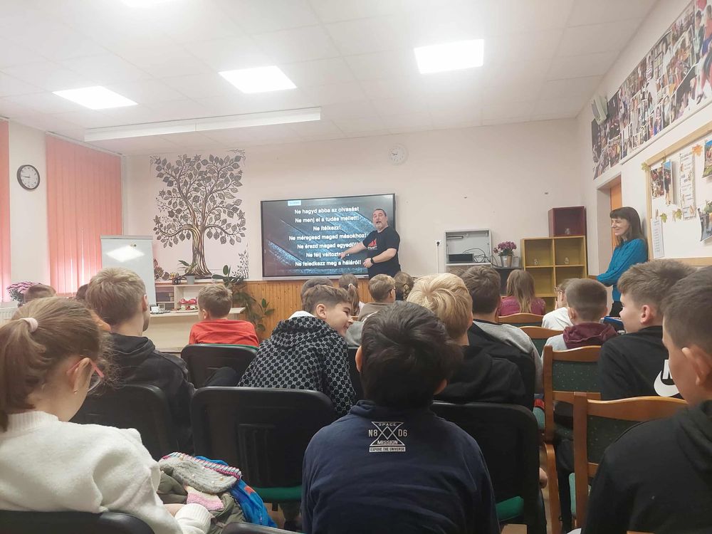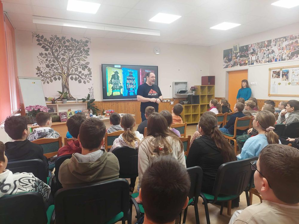 Holden Rose, azaz Kovács Attila író örvendeztette meg iskolánk negyedikes, ötödikes és hatodikos