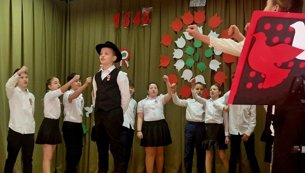 Szerdahelyi Szilvia és Tomasovszky Edit tanárnő vezetésében az ötödikesek műsorával emlékeztünk meg az 1848-as forradalom eseményeiről a Kultúrházban.