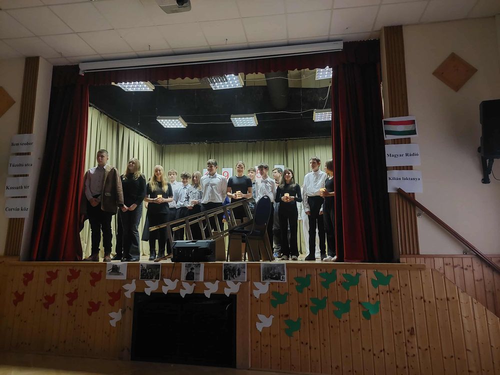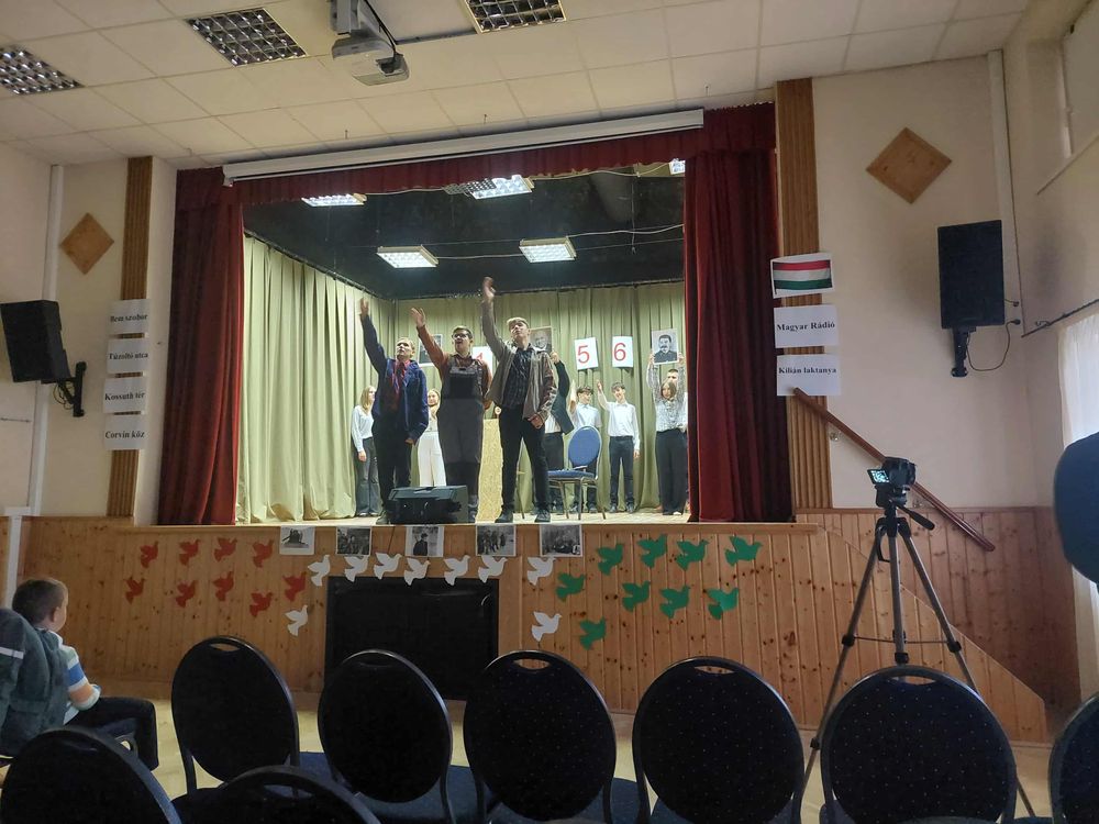 A nyolcadikosok Tégi Marcell tanárbácsi vezetésével egy család sorsán keresztül mutatták be az 1956-os eseményeket.