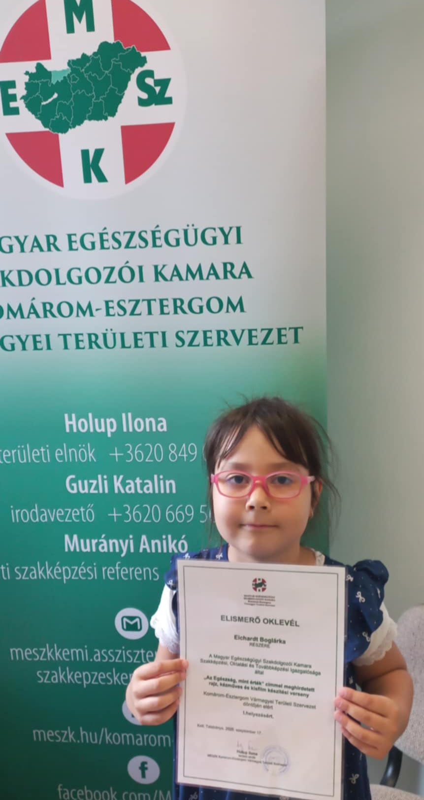 Eichardt Bogi 2.b osztályos tanuló, / felkészítő: Rektor Orsolya/ "Az egészség, mint érték" rajzpályázaton megyei 1. helyezett lett. Ezzel továbbjutott az országos döntőbe is. Szurkolunk neki!