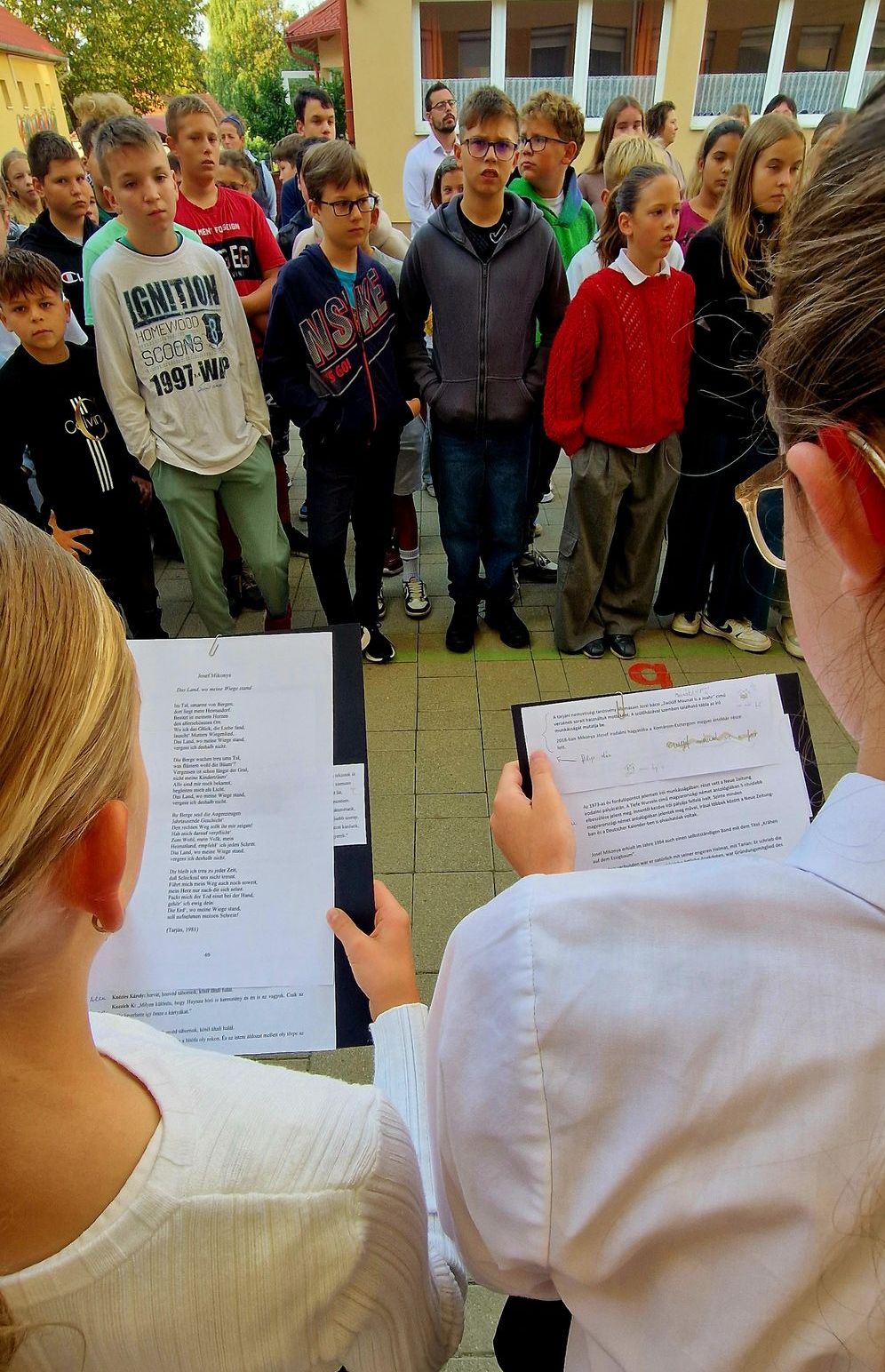 Mikonya Józsefre emlékeztek a hatodikosok Schwarczingerné Fuchs Mónika tanárnő vezetésével.