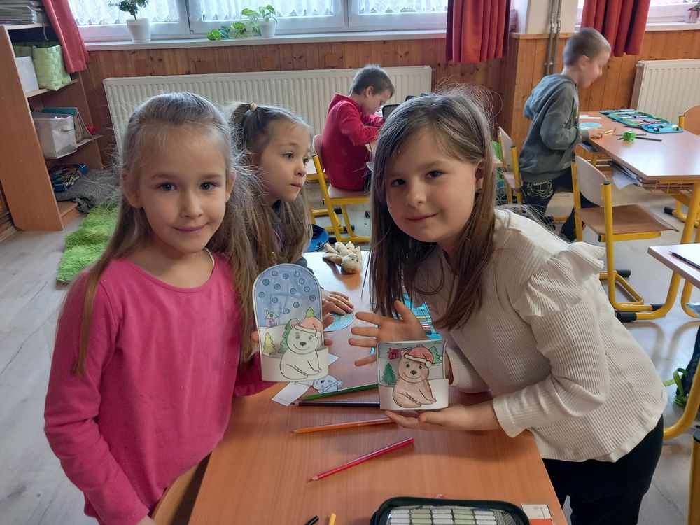 majd vágással, ragasztással, színezéssel térbeli medvét is készítettek. Az 1.b osztályosok otthonról